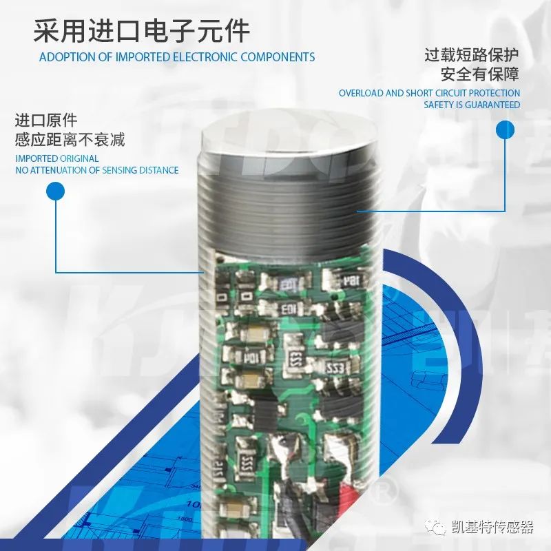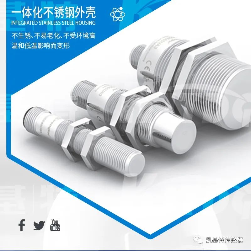 凱基特全金屬接近開關檢測各種金屬物體,快速,無觸點,壽命極長,動作可靠、性能穩定、頻率響應快、使用壽命長、抗干擾能力強、防水、防震、耐腐蝕等特點。