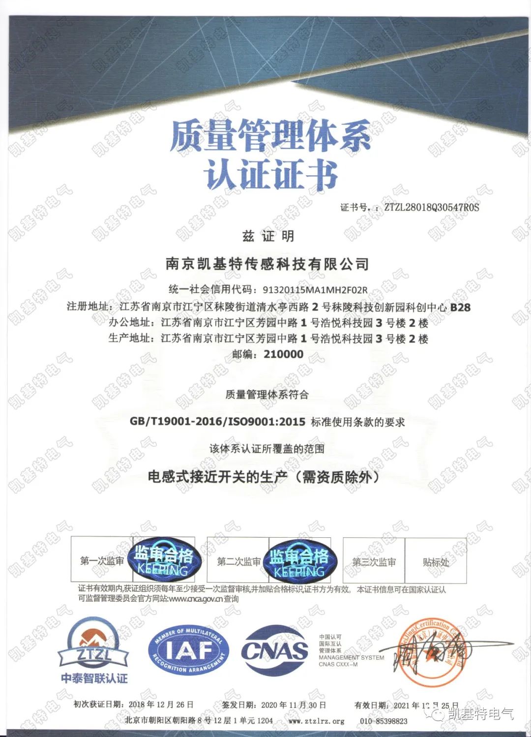 凱基特在不斷發展擴大的同時,對產品質量制定嚴格標準,已通過ISO9001:2015國際質量管理體系認證,所有產品均已通過CE認證、RoHS認證,確保產品性能和質量達到國際同類產品的先進水平,在行業處于領先地位。