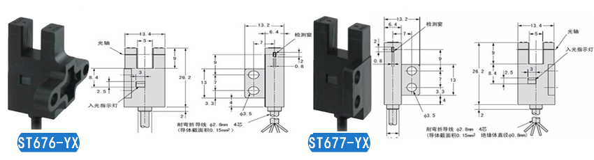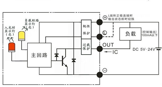 KJT-ST671-YX 控制輸出 | 受光時(shí)紅色指示燈亮,NPN集電極無輸出;遮光時(shí)紅色指示燈滅,NPN集電極開路輸出DC5V--24V 、 100mA以下,殘留電壓0.5V以下(負(fù)荷電流100mA時(shí))、殘留電壓0.3V以下(負(fù)荷電流40mA時(shí)) |