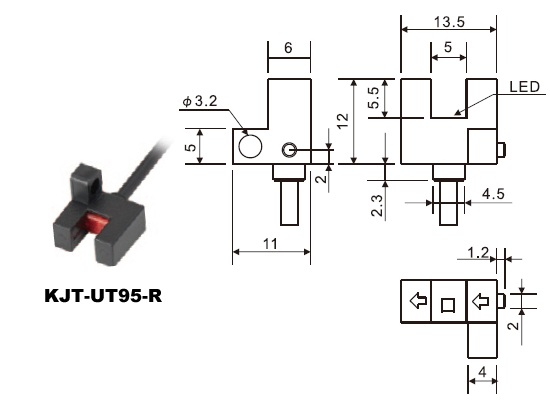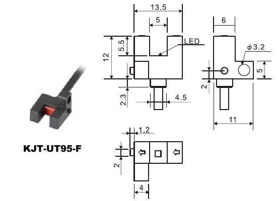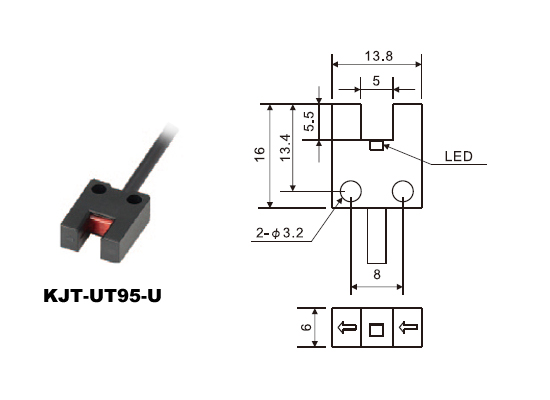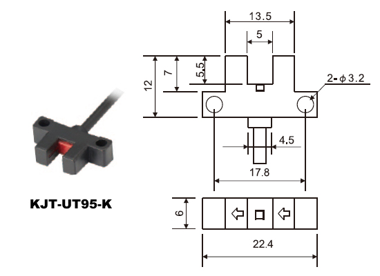 KJT-UT95系列超小型槽型光電傳感器,所有型號均裝備有兩個獨立的輸出-入光時ON/遮光時ON,可根據使用場所的不同,應對不同輸出要求。5-24V寬電壓范圍,3kHz高速響應,可應用于多種工業環境。