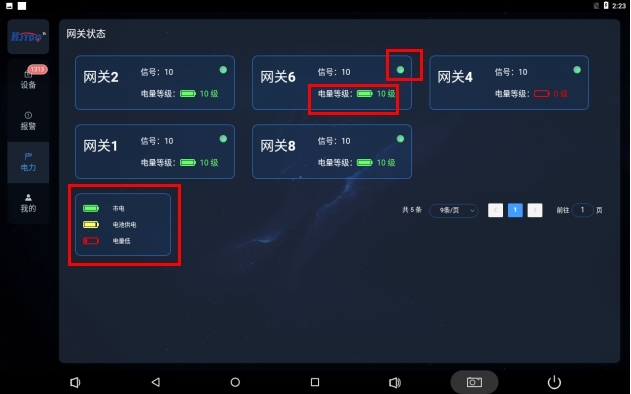 電力頁面展示整套無線系統(tǒng)里無線中繼器和無線智能網(wǎng)關(guān)的在線監(jiān)護,網(wǎng)關(guān)設(shè)計按照業(yè)主要求的供電方式給出設(shè)計,供電組成可在市電供電,電池供電,光伏供電3種方式下自由組合和自動切換。