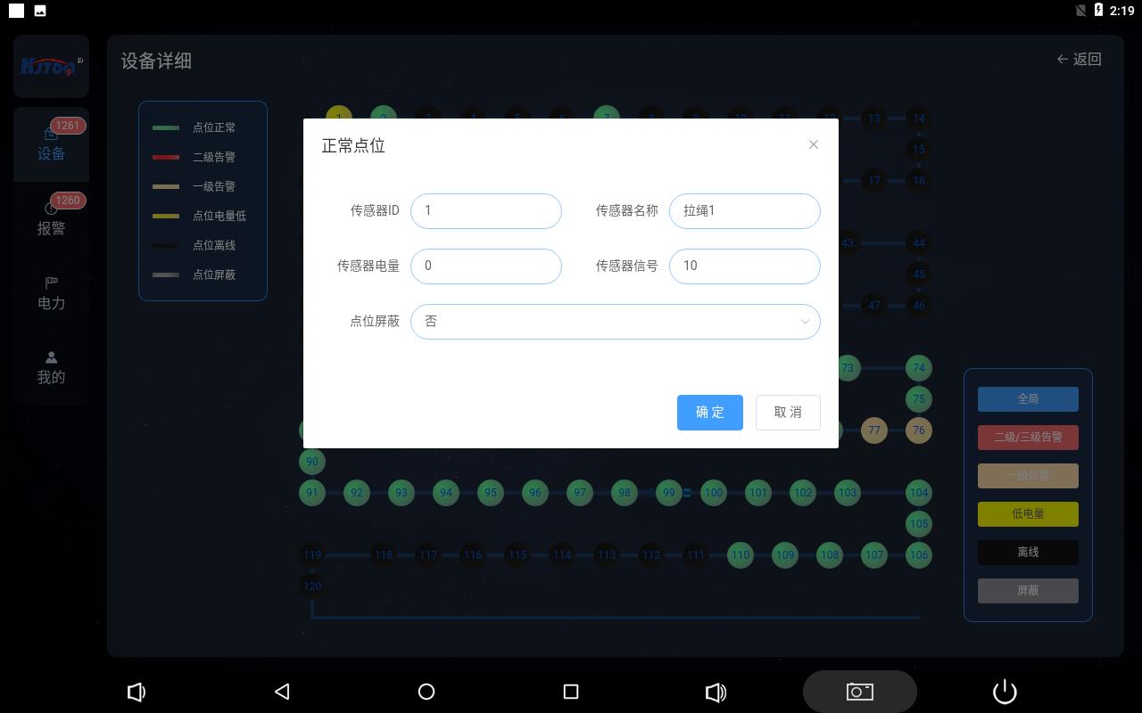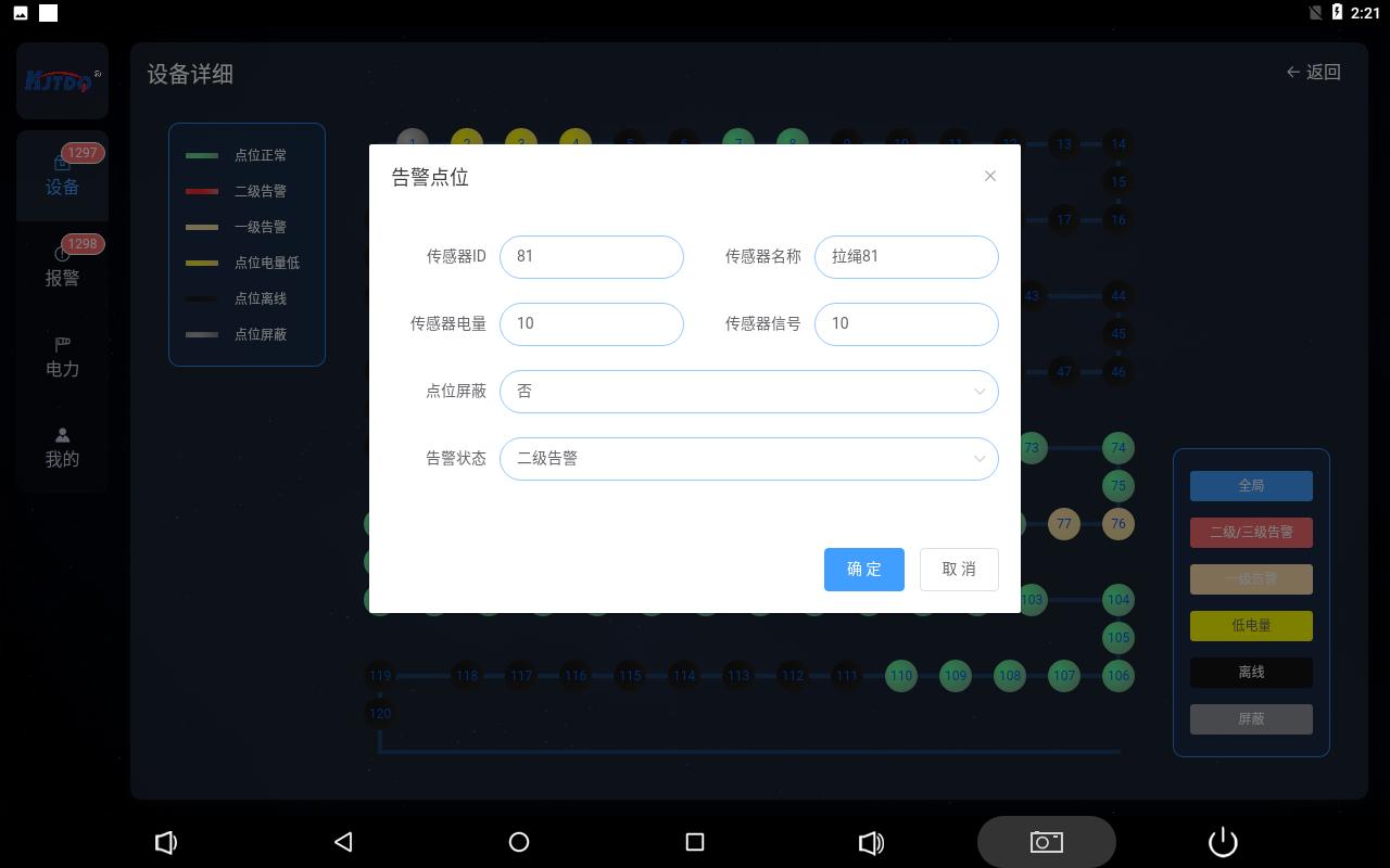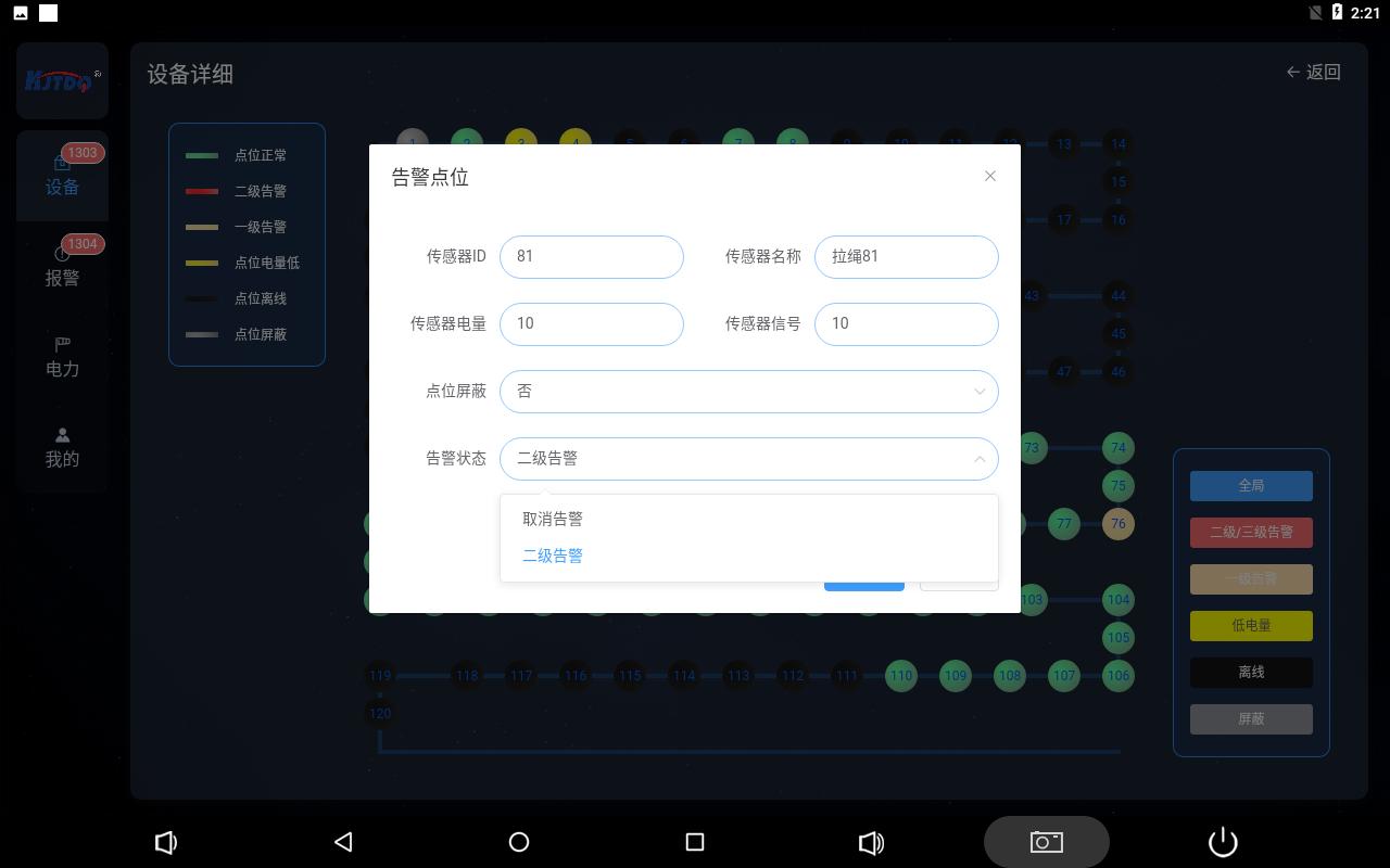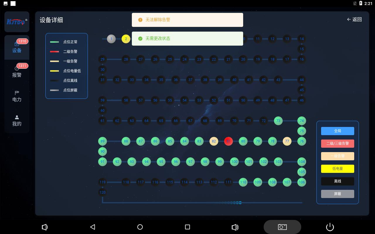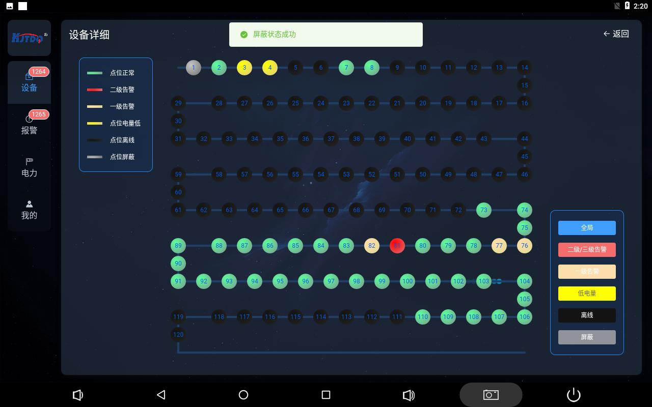 點擊圓圈彈出對應(yīng)保護裝置的詳細信息,并且可以設(shè)置保護裝置的屏蔽狀態(tài),手動解除二級告警狀態(tài)