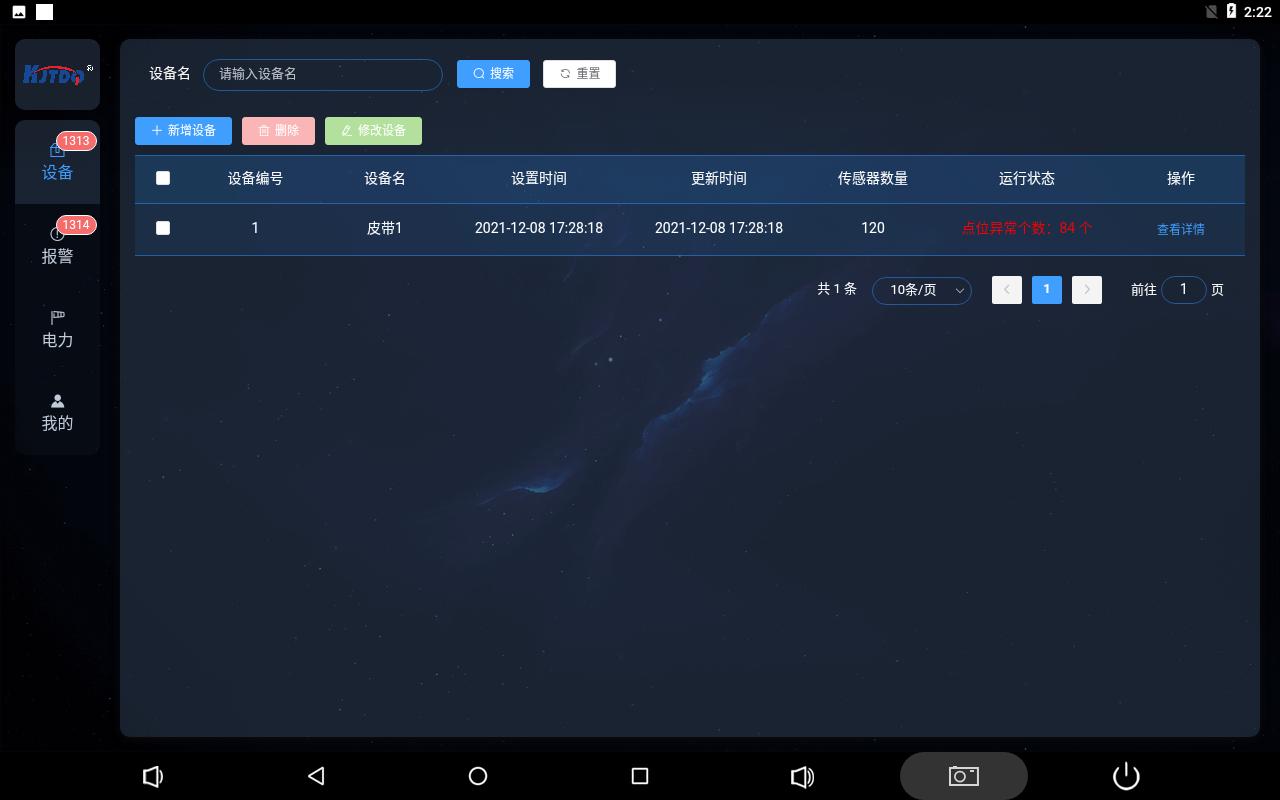 設(shè)備頁面可添加刪減配置查看皮帶數(shù)量名稱以及本皮帶上的保護裝置數(shù)量以及運行狀態(tài)
