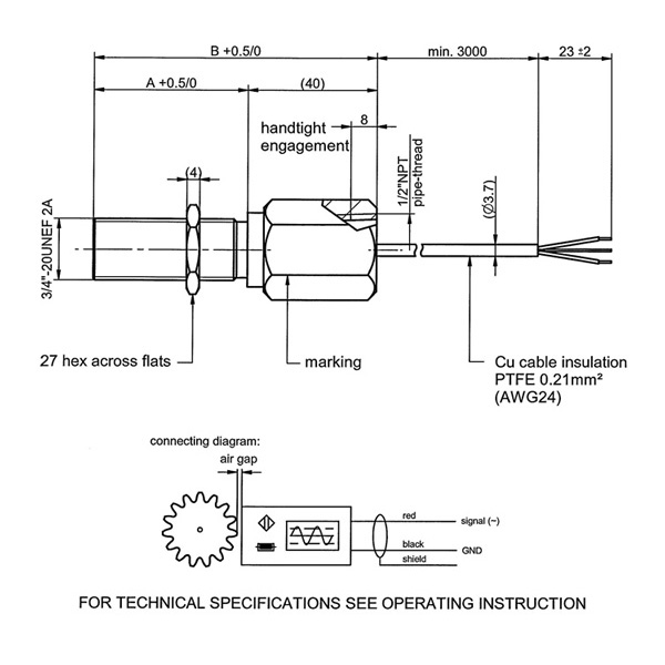 凱基特齒輪轉速傳感器核心部件是采用磁敏電阻作為檢測的元件,再經過全新的信號處理電路令噪聲降低,功能更完善。通過與其它類型齒轉速傳感器的輸出波形對比,所測到轉速的誤差極小以及線性特性具有很好的一致性.感應對象為磁性材料或導磁材料,如磁鋼、鐵和電工鋼等。當被測體上帶有凸起(或凹陷)的磁性或導磁材料,隨著被測物體轉動時,傳感器輸出與旋轉頻率相關的脈沖信號,達到測速或位移檢測的發訊目的。